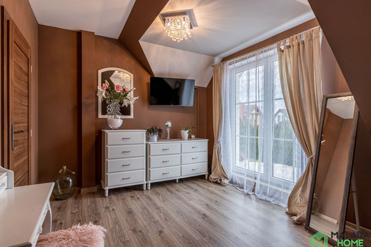 - 3 komfortowe sypialnie z czego jedna posiada balkon z widokiem na okoliczną zieleń.